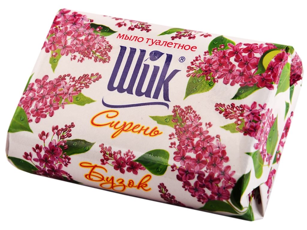 Мыло туалетное твердое марки (К) ШИК Любимые цветы "Сирень" 70г. Мыло ШИК гарантирует коже отличное увлажнение и комфорт, тонизирует ее и обеспечивает смягчающий эффект. Основу мыла составляют натриевые соли жирных кислот пальмового и кокосового масел, что обеспечивает мягкое очищающее действие, образование пышной кремовой пены. Экстракт сирени обладает мощной противовоспалительной активностью и легкими дубильными свойствами, эффективно стягивает поры, очищает кожу при гнойничковой сыпи любого происхождения, подавляет рост грибковых возбудителей. Крем в составе мыла чудесно увлажняет и питает кожу благодаря продуманному составу, в котором собраны ценные и полезные экстракты и масла.