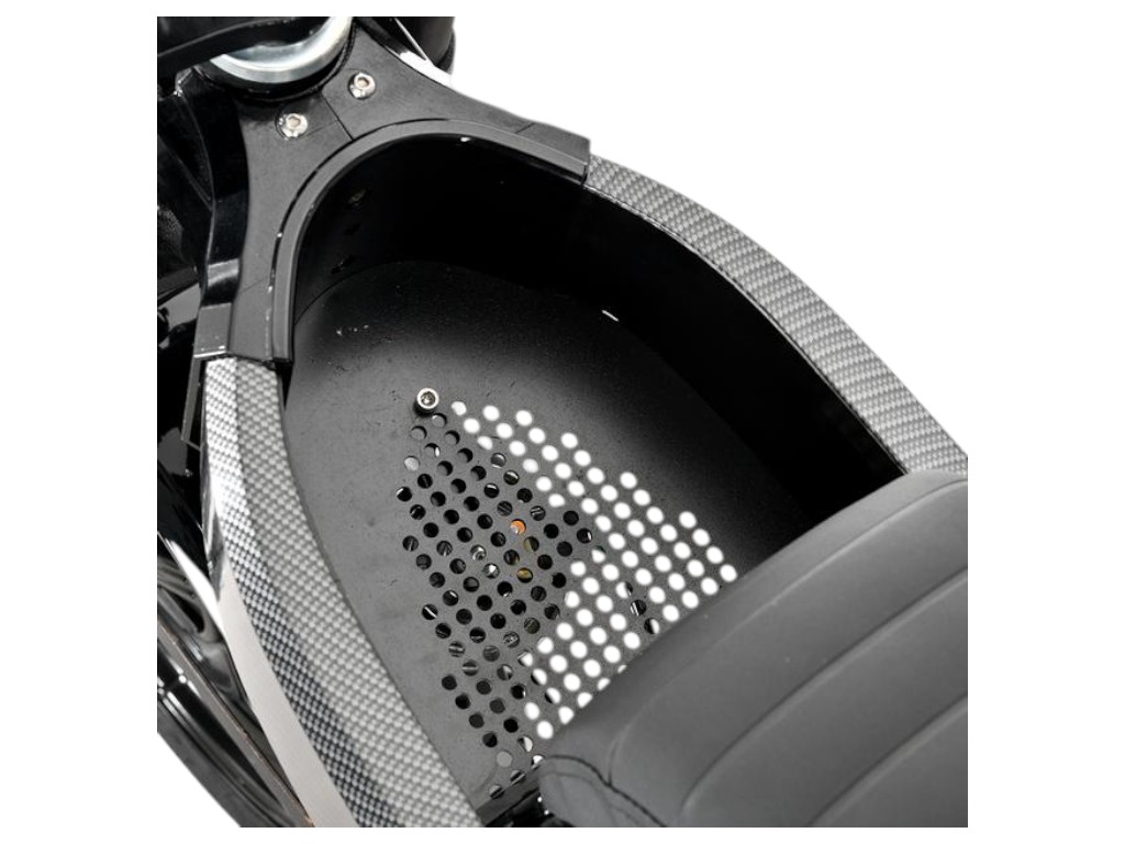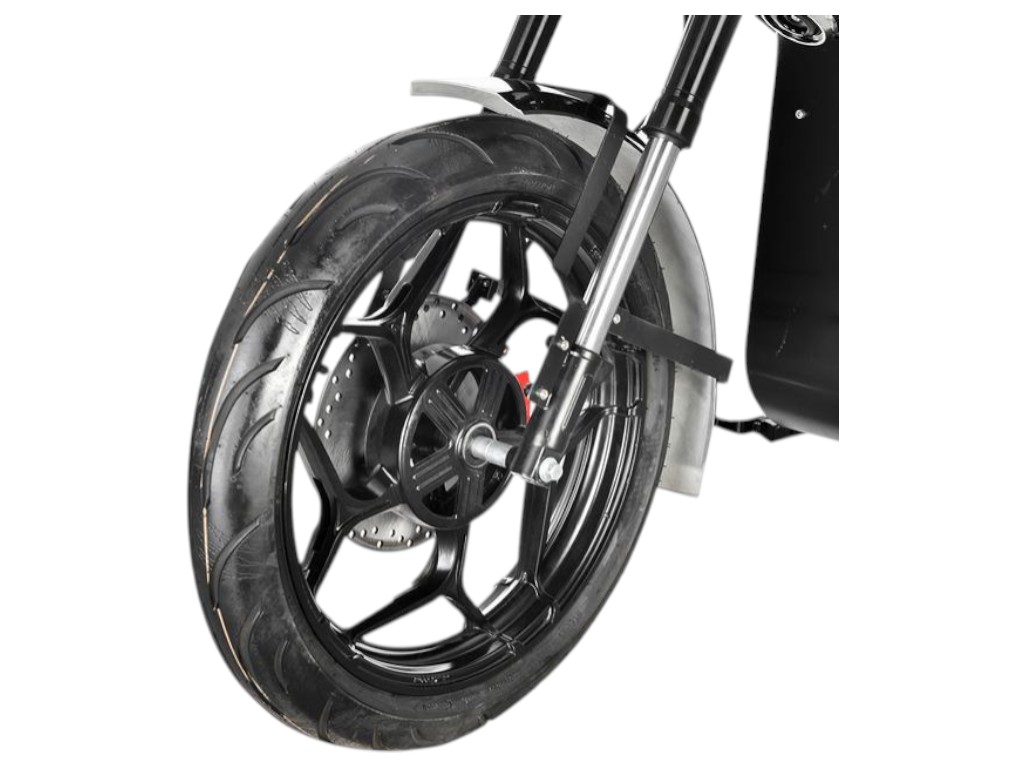 Модель совмещает в себе производительность и устойчивость на разных типах дорожного покрытия. Электродвигатель мощностью 2000 Вт в паре с аккумулятором на 60 В и 20 Ah обеспечивает до 35 км пробега и подъёмы до 30 градусов. Конструкция включает двойное сиденье, дисковые гидравлические тормоза, сигнальные огни и амортизацию на обеих осях. Диаметр колёс 17 дюймов повышает маневренность и стабильность движения.