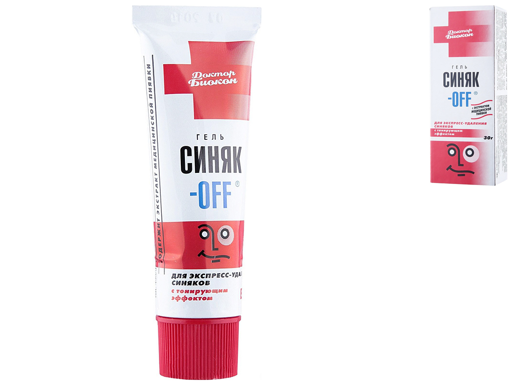 Гель Синяк-OFF Доктор Биокон с тонирующим эффектом, помощь при синяках и кровоподтеках 30г. Рекомендуется использовать на открытых поврежденных участках лица, шеи, тела. Хорошо ложится и скрывает проблемные зоны. Значительно ускоряет исчезновение синяков, снимает воспаления на различных участках лица и тела. Ускоряет рассасывание кровоподтеков за счет ускорения микроциркуляции и лимфодренажа. Уменьшает отечность и припухлость после травм и операций на лице, особенно под глазами.