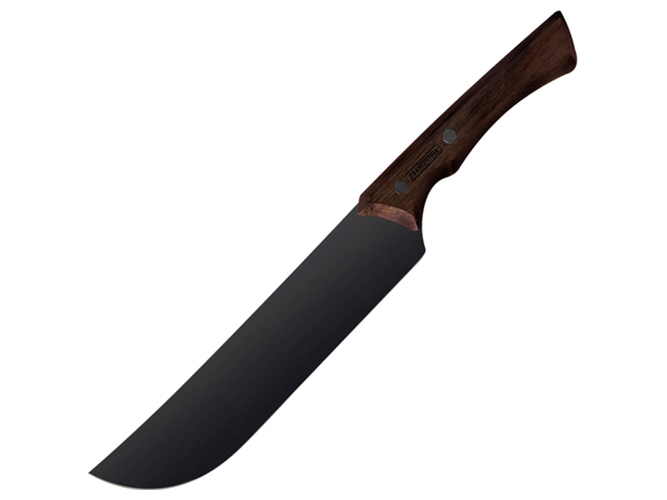 Нож для мяса Tramontina Churrasco Black, 20,3см. Материал лезвия: чёрная нержавеющая сталь. Материал ручки: дерево (бразильский орех). Режущий край ножа: гладкий. Цвет: черный и коричневый. Размер: 33,75х2,15х4,86см. Длина лезвия: 19,25см. Эргономичная рукоятка для повышенного комфорта. Рекомендуется ручная мойка.