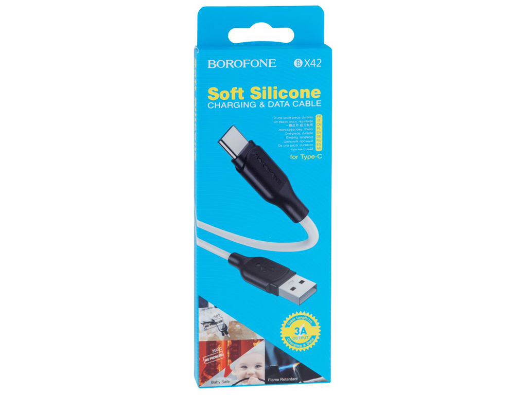 Кабель USB Borofone BX42 Silicone Type-C - отличный вариант для зарядки ваших устройств. Модель выделяется своей практичной реализацией, длительным сроком службы и привлекательным дизайном, который представлен в двух классических расцветках. Корпуса коннекторов изготовлены из термопластического эластомера, прочного материала, свойства которого схожи со свойствами каучука. Удобная форма корпусов разъемов в сочетании с их приятной на ощупь рельефной поверхностью обеспечит комфорт в повседневном использовании аксессуара. Оплетка кабеля выполнена из пищевого силикона, выделяется своей экологичностью, эластичностью, стойкостью к низким и высоким температурам, спутыванию, растяжениям и изломам. Модель поддерживает передачу данных, способна выдерживать ток с максимальной силой 3А. Установление соединения между устройствами осуществляется через USB – Type-C. Длина кабеля составляет 1м.