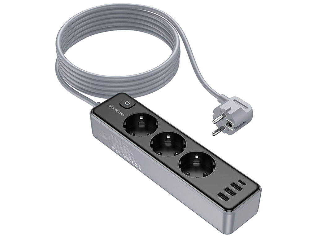 Сетевой Удлинитель Borofone BAC8 (1C3A)(EU)(L=3M), цвет черный
