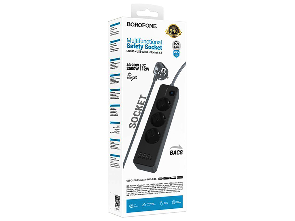 Особенности и преимущества сетевого удлинителя Borofone BAC8: