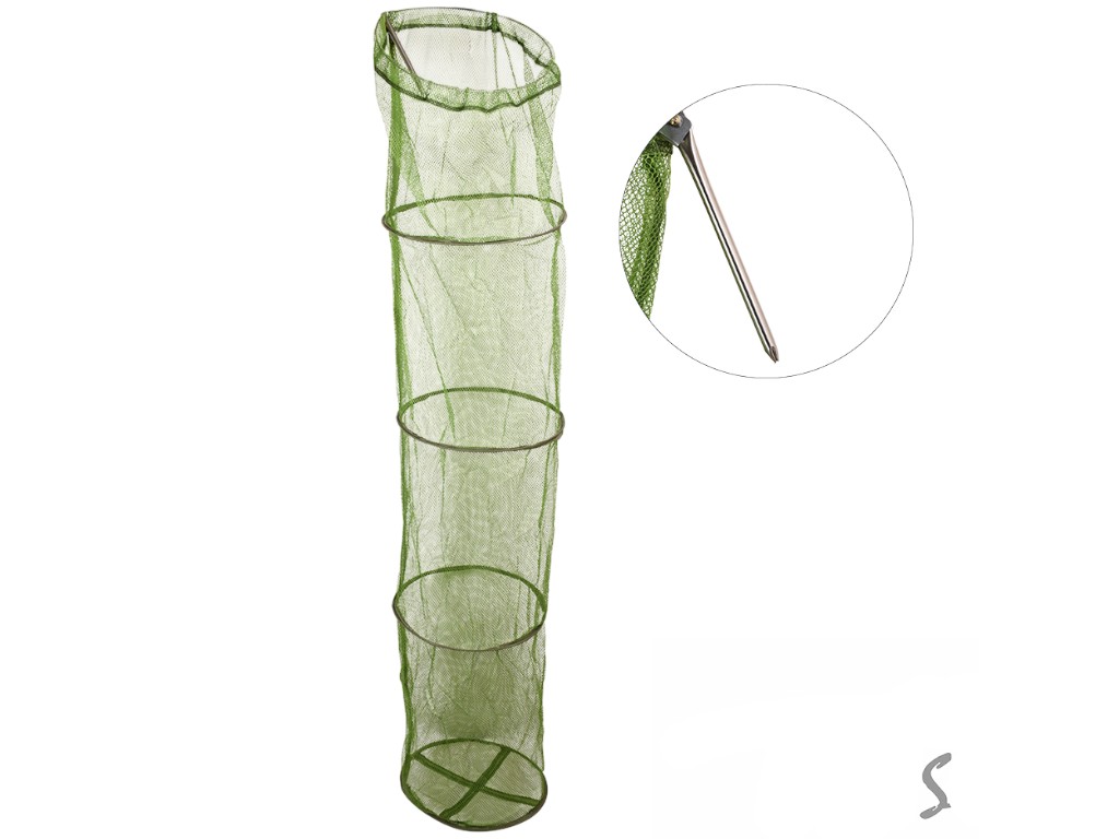 Садок рыболовный с колышком, нейлон, 33×120см, цвет зеленый
