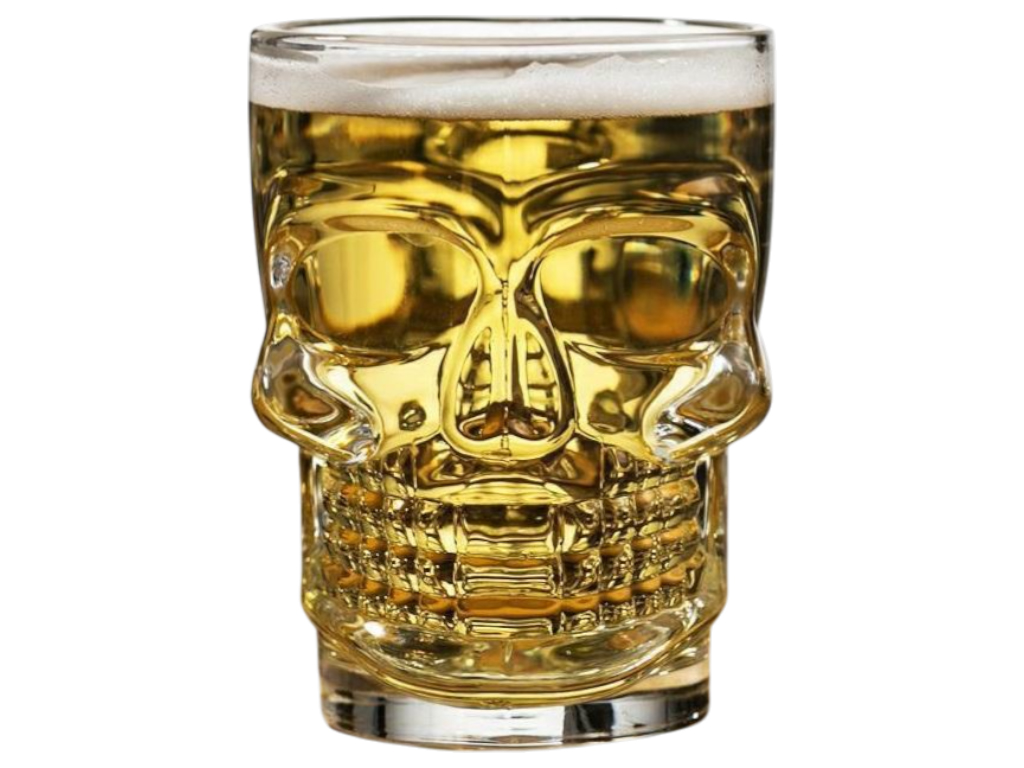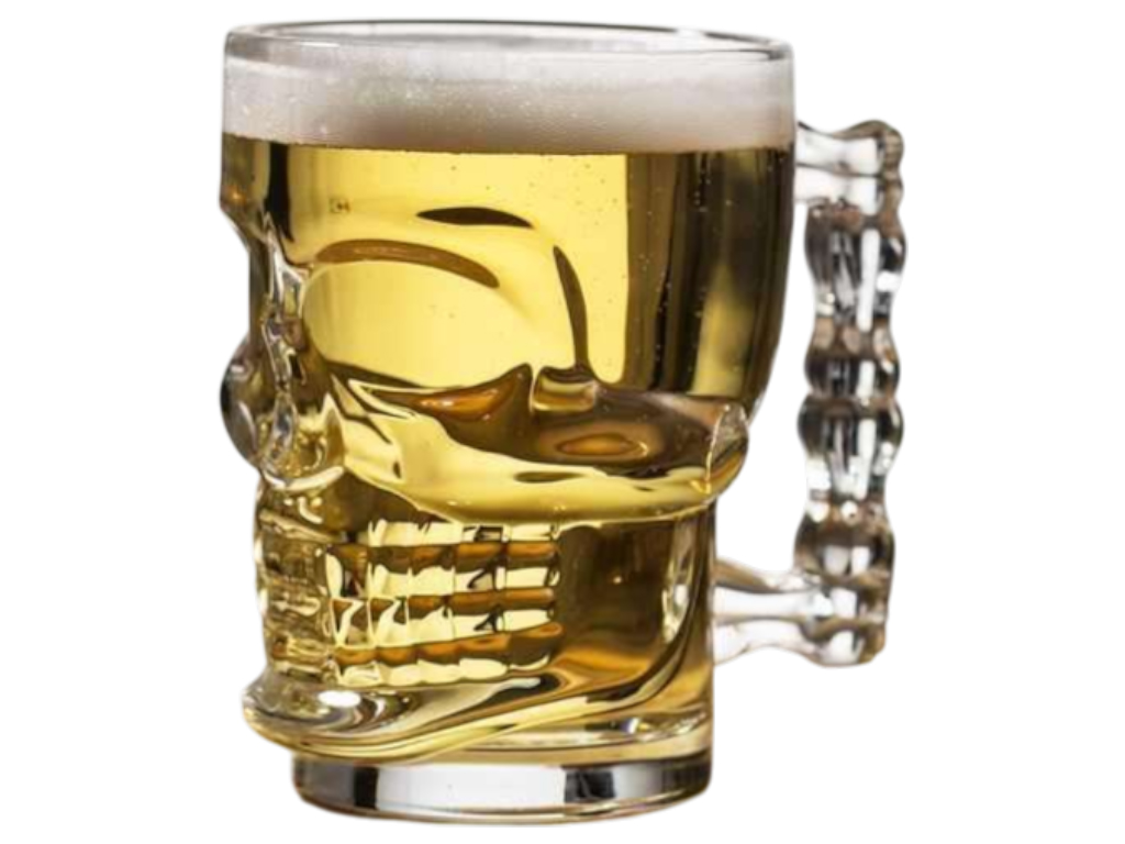 Оригинальный стеклянный бокал в форме черепа — стильный аксессуар для любителей необычной посуды. Подходит для подачи пива, коктейлей, сока или лимонадов. Благодаря объёму 540 мл и удобной ручке бокал не только эффектен внешне, но и практичен в использовании. Идеален для тематических вечеринок, подарков или домашнего бара.