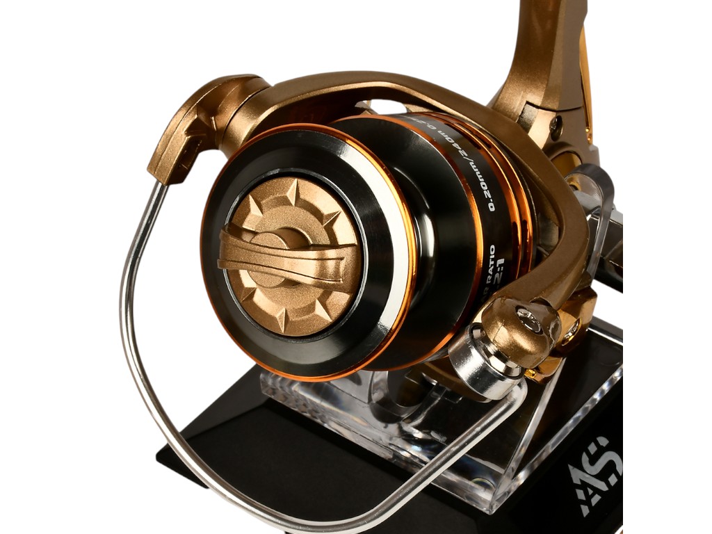 Катушка Fishing reel Sam's Fish 3000 3+1BB, алюминиевая шпуля. Передний фрикцион. Цвет катушки: золотой. Передаточное число: 5.2:1. Вместимость в мм/м: 0.20/240, 0.25/200, 0.30/140. Количество шарикоподшипников: 3+1шт. Мощная приводная система. Усиленный главный вал. Компьютерная сбалансированная система. Отличная система колебаний линии укладки. Материал: пластиковый корпус; алюминиевая шпуля; вал и скоба лескоукладчика - нержавеющая сталь.