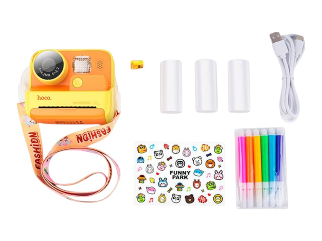 Hoco DV200 - это компактная фотокамера с функцией мгновенной термопечати, созданная специально для маленьких исследователей. Она позволяет фотографировать, снимать видео и сразу распечатывать чёрно-белые снимки без чернил - просто, быстро и безопасно.