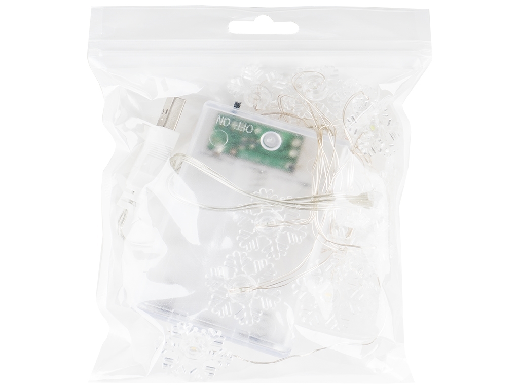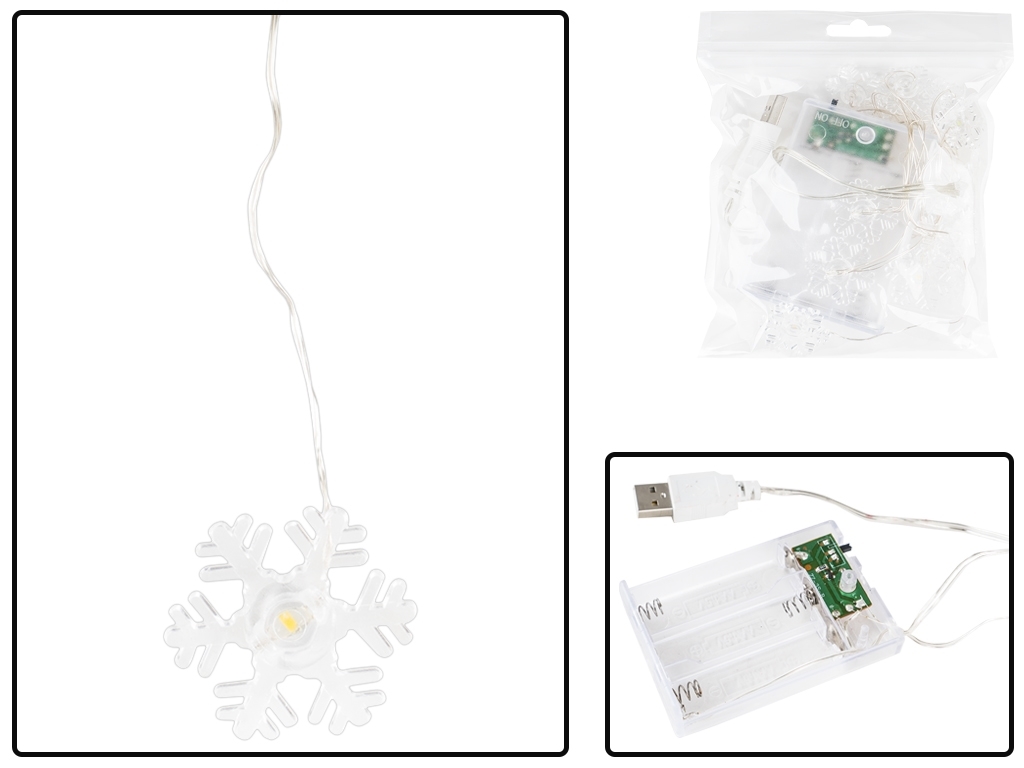 Длина: 2м. Диметр одной фигуры: 2,5см. Материал фигур: пластик. Работает от трех батареек типа АА 1,5V (не идут в комплекте), и кабеля USB. Работают в двух режимах постоянного и переменного свечения. Гирлянда светодиодная Snow 2м 20led – это одна из популярных новогодних гирлянд, представляющих собой длинный кабель, вдоль которого расположены светодиодные фигуры. В каждой фигуре этой гирлянды находится небольшой цветной светодиод розового, синего, зеленого и желтого цвета.
