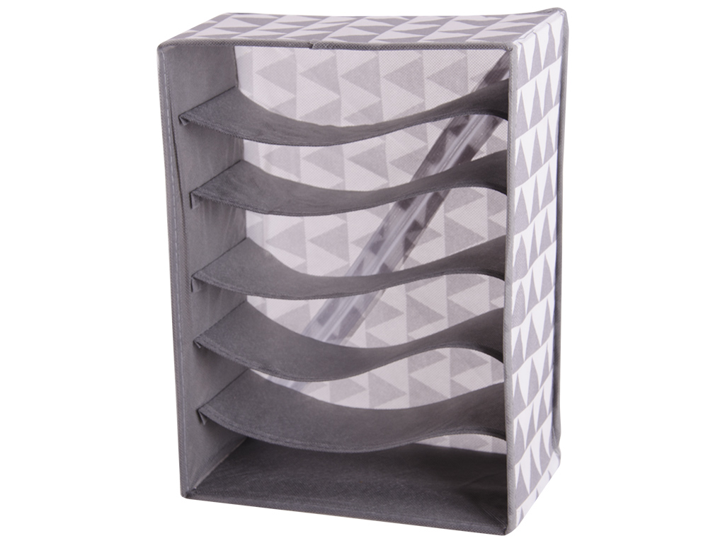 Размер ящика: 32х23,5х12см. Размер для хранения и транспортировки: 55х12х1,5см. Материал: картон, ПВХ. Тип: ящик-органайзер для хранения белья. 6 отделений для хранения. Упаковка: полиэтилен. Цена за 1шт. Расцветки ассорти. В сложенном состоянии достаточно компактен и не будет занимать много места. Собрать его очень легко, всего несколько движений и у вас стильный и вместительный ящик для хранения вещей.