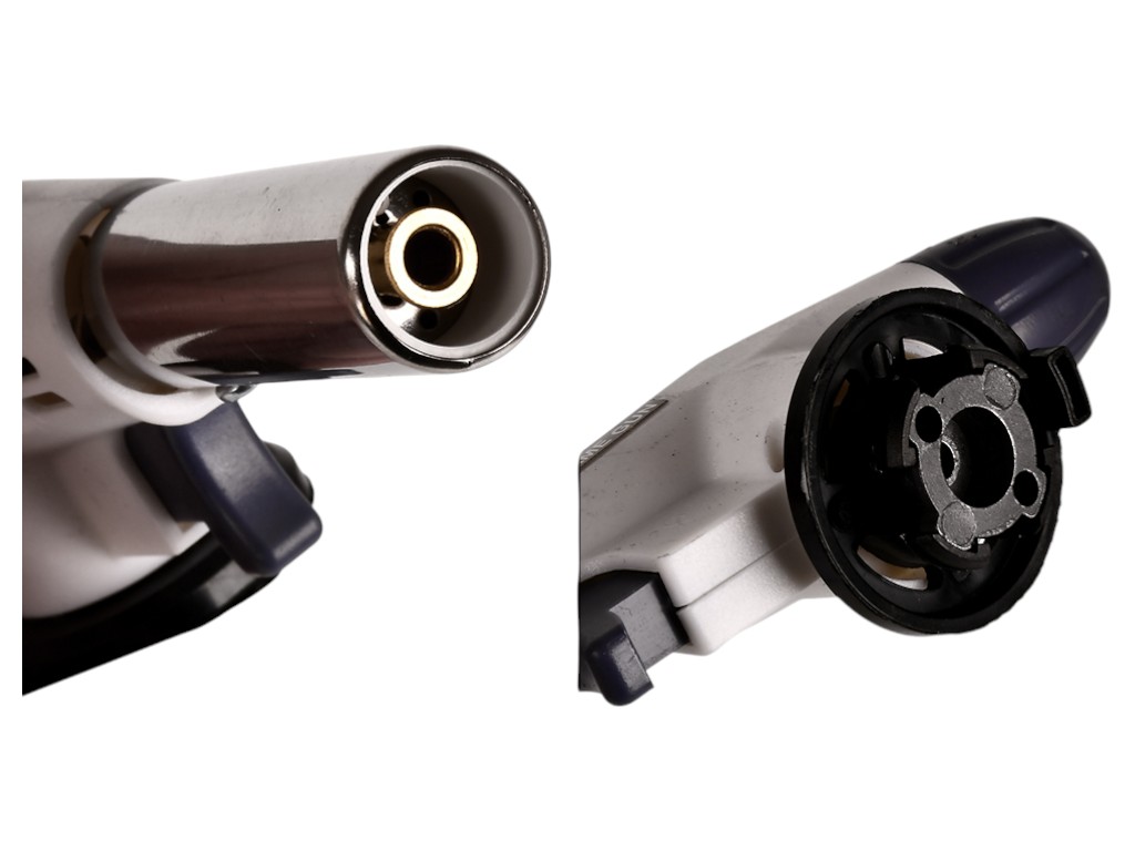Автоматическая газовая горелка с пьезорозжигом предназначена для розжига, нагрева, плавления и пайки различных материалов. Её используют дома, в мастерской, на производстве и в походных условиях. Устройство подходит для карамелизации сахара, обработки металла, удаления краски, прогрева труб, розжига камина, мангала или угля. Корпус выполнен из металла и термостойкого пластика, устойчивого к перегреву и механическим воздействиям. Насадка длиной 18 см направляет поток огня точно в рабочую зону, что делает работу аккуратной и безопасной. Встроенный пьезорозжиг активируется одним нажатием кнопки, пламя загорается мгновенно без спичек и внешних источников огня. Регулировка интенсивности производится при помощи колеса на корпусе, что дает возможность менять мощность от мягкого до яркого пламени в зависимости от задачи. Конструкция рассчитана на использование с газовыми баллонами цангового типа. Фиксация выполняется поворотом до упора — соединение прочное и герметичное. Пламя устойчиво даже при ветре, что делает горелку удобной при работе на улице. Отверстия для подачи воздуха способствуют равномерному горению и стабильной температуре нагрева. Конструкция исключает риск обратного пламени, сохраняя стабильность работы при длительном использовании. Ручка имеет эргономичную форму, хорошо удерживается в руке и не скользит. Баланс между металлической и пластиковой частью равномерный, что снижает усталость при длительном нагреве. Легкий вес делает инструмент удобным для переноски. Горелка подходит для бытовых и профессиональных целей — от ремонта сантехнических соединений до работы с ювелирными заготовками. В кулинарии изделие применяют для обжарки десертов, мяса, рыбы и овощей. Также оно используется для запаивания термоусадочных трубок, нагрева клейких соединений и обработки поверхностей. Пламя направленного типа даёт возможность выполнять точную работу без перегрева соседних участков.