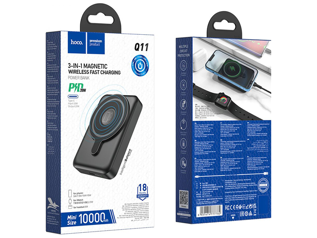 Power Bank Hoco Q11 PD20W 3-in-1 Wireless Fast Charging 10000mAh Цвет Черный