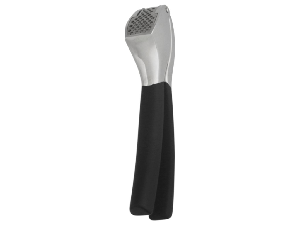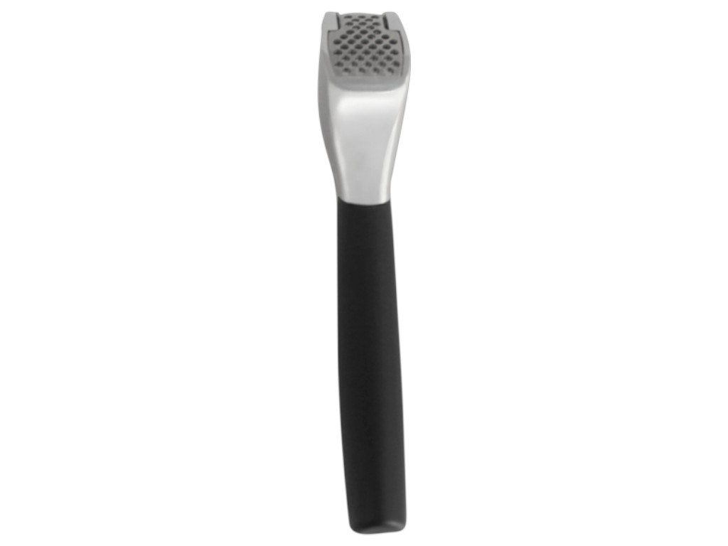 Пресс используется для измельчения зубчиков чеснока без предварительной нарезки. Рабочий механизм выполнен в виде двух рычагов со встроенной прессовочной корзинкой, раздавливающей чеснок под давлением при смыкании ручек. Основание изготовлено из цинкового сплава, что обеспечивает стабильную геометрию, устойчивость к деформациям и удобную очистку. В серии Ringel Salsa все элементы выполнены в едином дизайне, благодаря чему пресс для чеснока может дополнить набор других кухонных приборов. Ручки имеют анатомическую форму и отверстие на торце для вертикального подвешивания. Изделие предназначено для бытового использования, подходит для периодического или повседневного применения на домашней кухне. После каждого использования рекомендуется сразу промыть пресс под струей воды, используя при необходимости мягкую щетку, чтобы избежать засыхания остатков продукта в сетке.