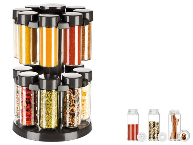 Емкости для специй Seacon, на подставке идеально подходят для хранения специй на кухонном и обеденном столе. Специи хранятся наглядно, емкости удобны в использовании благодаря вращающейся подставке. Воронка для легкого наполнения емкостей находится внутри подставки. Емкости для специй универсальны, они оснащены 16 крышками для молотых специй и 16 запасными крышками для немолотых специй. Материал: первоклассное прочное стекло и высококачественный пластик. Цвет: антрацивовый. Диаметр: 17см. Высота: 28см.