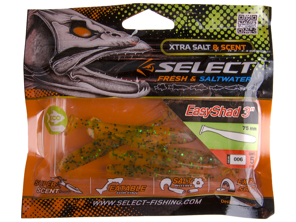 Приманка силиконовая виброхвост съедобная Select Easy Shad 3" col.006 75мм (цена за упаковку 5шт)