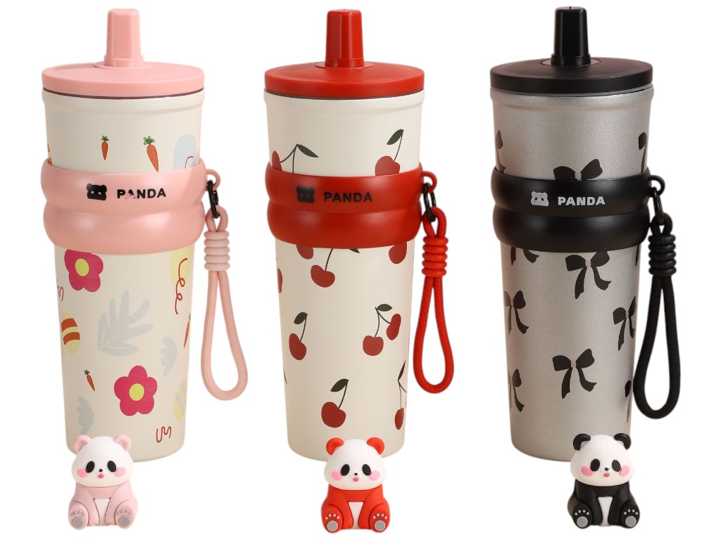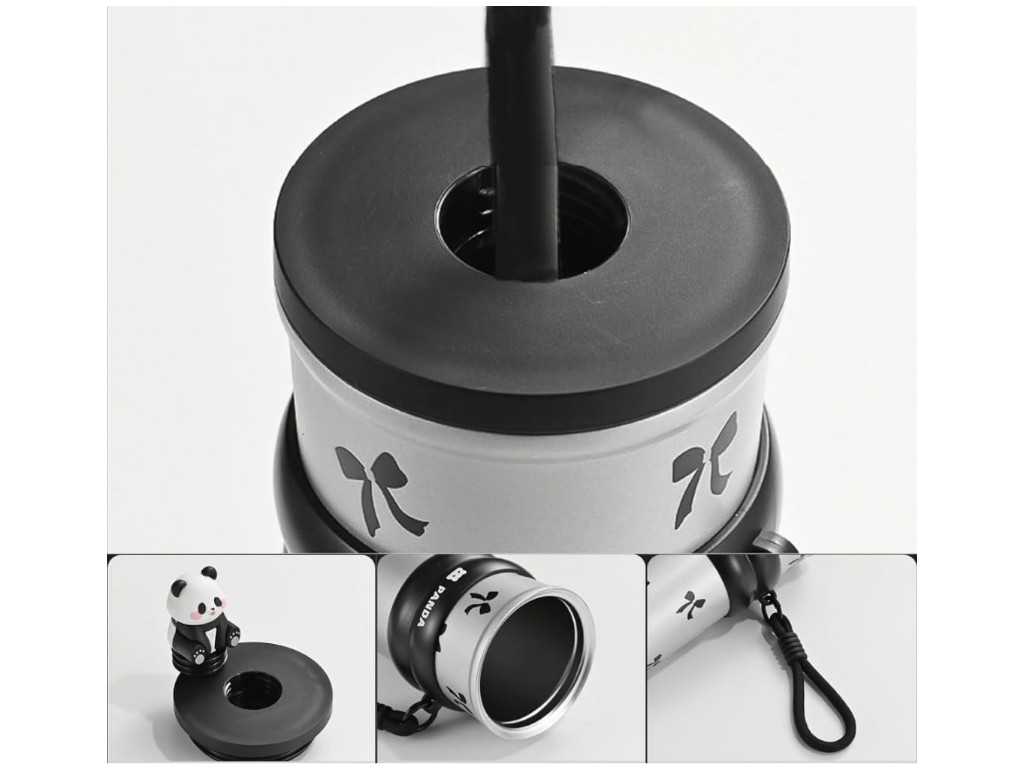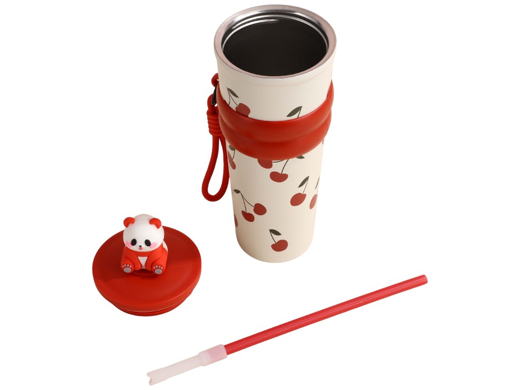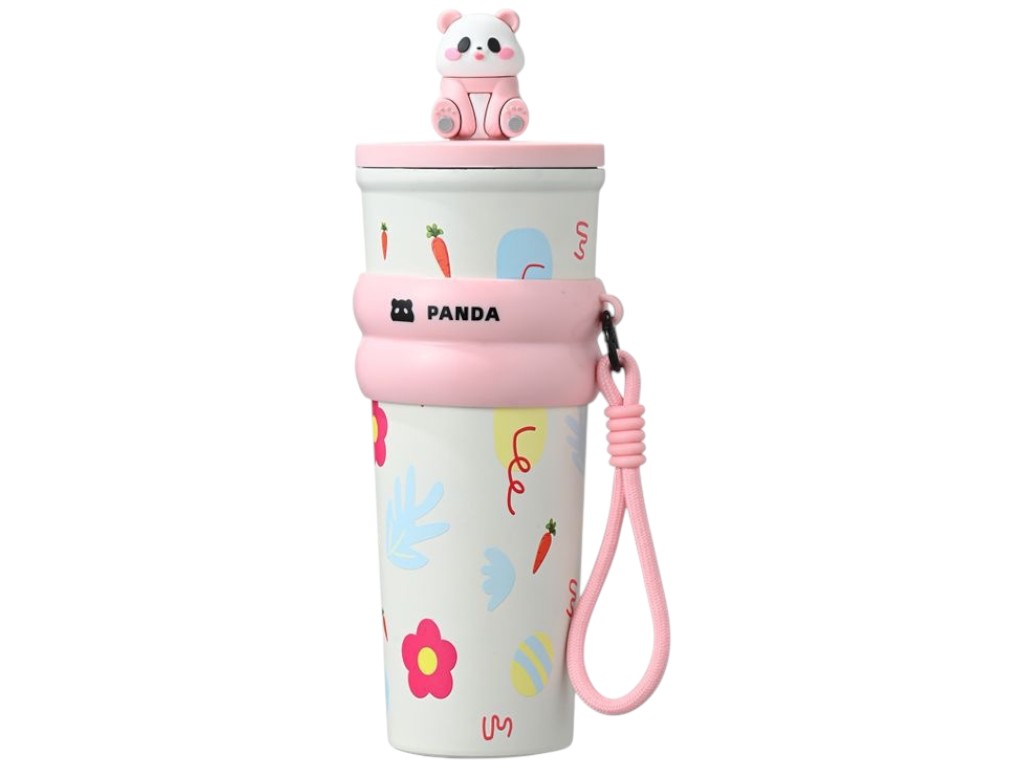 Детский термос Panda создан в ярком и добром стиле, который сразу привлекает внимание ребёнка. Его корпус из прочной нержавеющей стали устойчив к ударам и сохраняет напитки свежими и вкусными длительное время. Внешняя часть украшена весёлыми рисунками, а крышка дополнена миниатюрной пандой, которая закрывает отверстие трубочки и защищает его от пыли. Резьбовое соединение крышки делает термос полностью герметичным, что исключает проливание даже при активном использовании. Внутренний слой из стали сохраняет тепло до 12 часов и прохладу до 24 часов, что удобно для школы, прогулок и поездок. Широкое горлышко удобно при наливании напитков и уходе за изделием. В комплект входит силиконовая трубочка с мягким наконечником. Поверхность корпуса матовая, приятная на ощупь и не скользит в руках. Силиконовое кольцо с фирменной надписью служит дополнительной зоной захвата и украшением. На кольце закреплён ремешок с карабином, который помогает ребёнку носить термос с собой или подвешивать его к рюкзаку. Конструкция устойчива, термос надёжно стоит на любой поверхности и не нагревается снаружи. Уход не требует особых усилий: изделие достаточно промывать тёплой водой с мягким моющим средством и высушивать при открытой крышке. Мытьё в посудомоечной машине не рекомендуется, чтобы сохранить внешний вид и герметичность крышки. Каждый термос упакован в индивидуальную коробку и подходит для подарка ребёнку любого возраста.