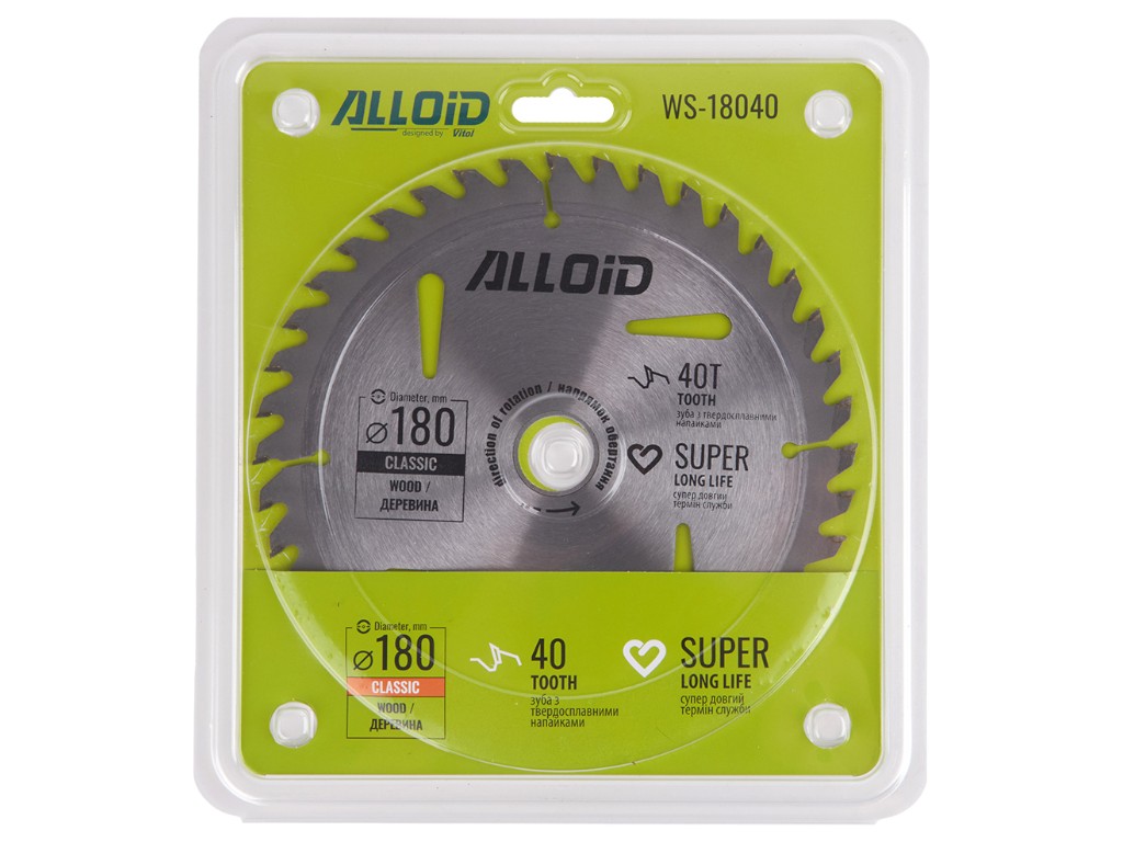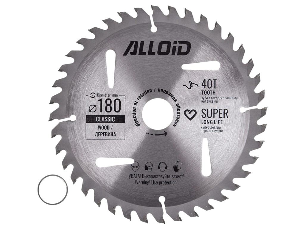 Диск пильный Alloid по дереву, 40 зубьев, твердосплавные напайки, 180x25,4/22,2мм