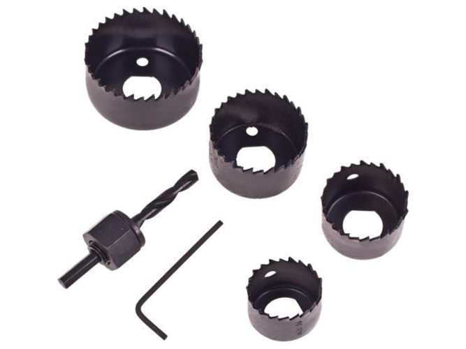 Набор корончатых фрез по дереву Alloid используется для обработки твердой и мягкой древесины, фанеры, ДСП, пластмассы и гипсокартона. Набор состоит из 6 предметов: сверло с переходником, шестигранник, коронки диаметром 32мм, 38мм, 44мм, 54мм. Изготовлены из прочной углеродистой стали. Жесткая конструкция обеспечивает высокую устойчивость при вращении. Режущие зубья обеспечивают четкий и ровный разрез материала.