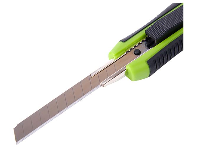 Универсальный инструмент для повседневного использования дома, в офисе, на складе или на строительстве. Благодаря прорезиненному корпусу нож удобно лежит в руке, а выдвижное лезвие из высокоуглеродистой стали SK5 гарантирует точный и ровный рез. Надежный фиксатор обеспечивает безопасную работу даже при интенсивной нагрузке.