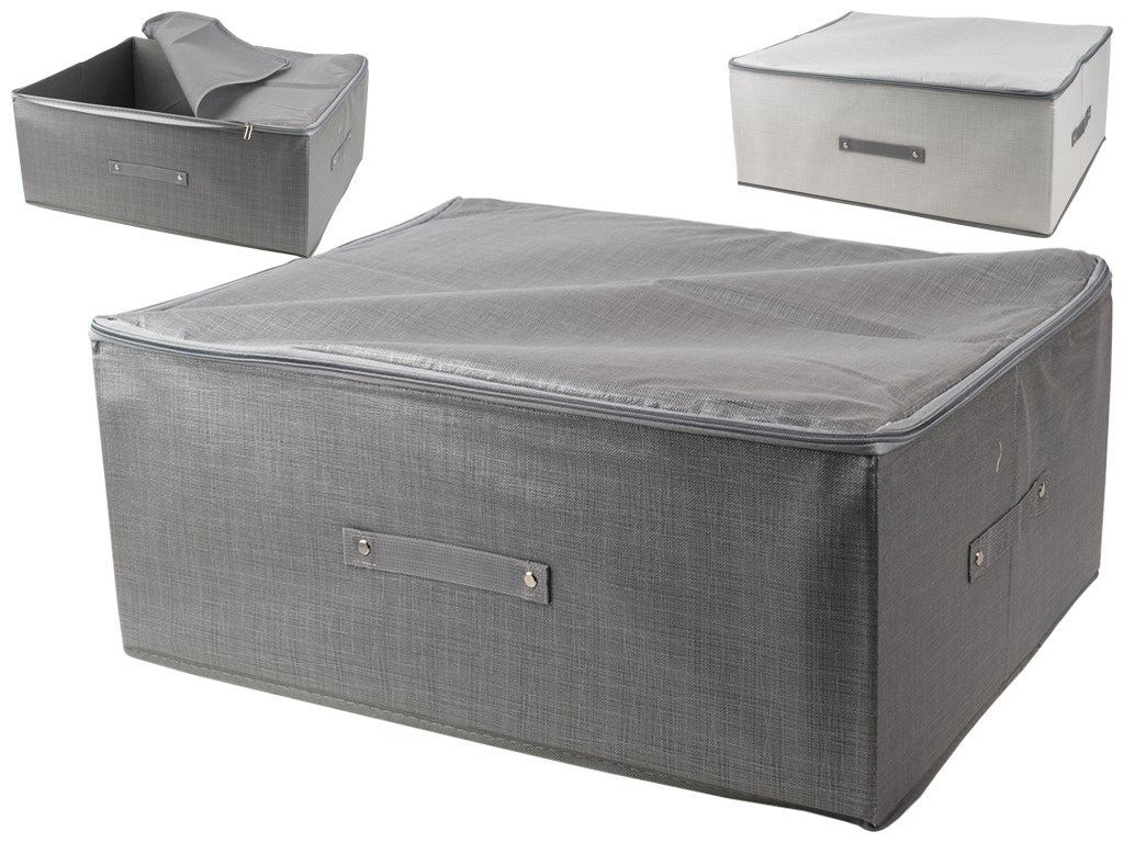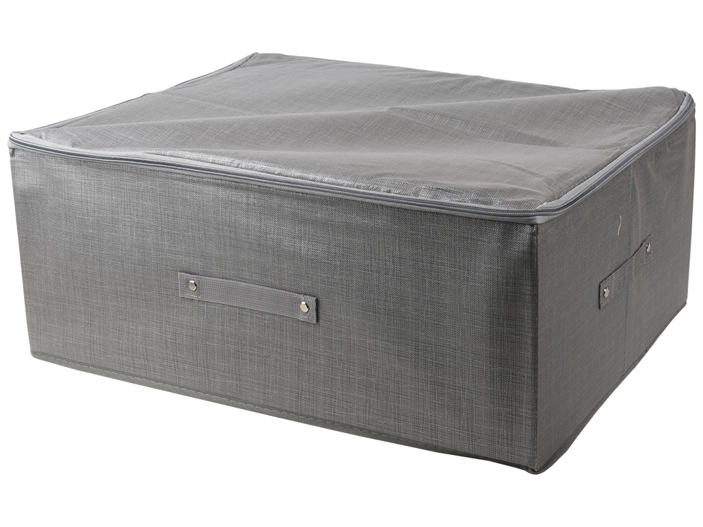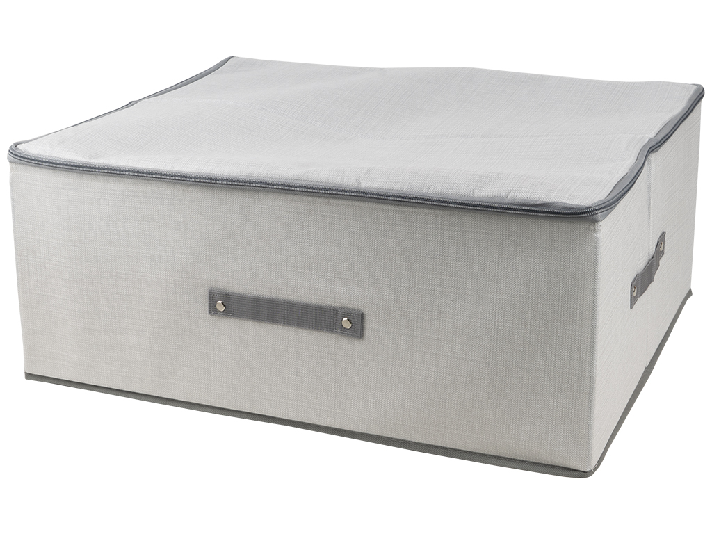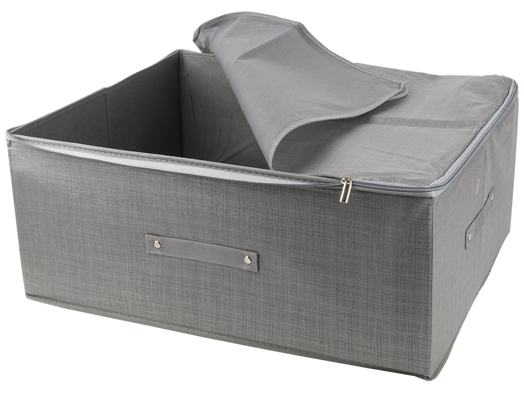 Размер: 60х45х24см. Материал: нетканое полотно с принтом под мешковину, картон. Цвета ассорти. Коробка-органайзер ПВХ для хранения белья. Крышка откидная не снимается, закрывается на одну липучку. На тыльной стороне расположена ручка. Поставляется в пакете.