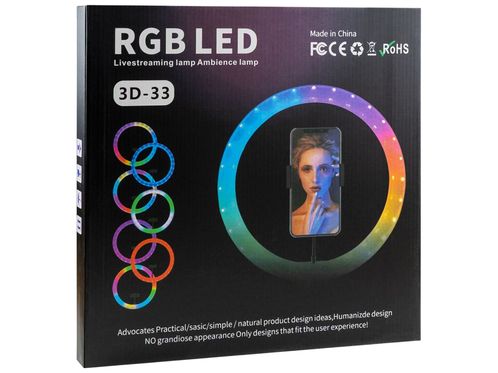 Кольцевая лампа Rgb Crystal 3D-33 диаметром 33см - универсальное решение для съёмки видео и фото, оформления стримов, макияжа и декоративного освещения. 3D-диффузор с гранёной текстурой рассеивает свет по окружности, создавая объёмное и равномерное освещение на 360°. 120 светодиодов обеспечивают яркий поток с разными режимами - от стандартных температурных до эффектных Rgb-режимов (градиент, сектор, мерцание и др.). Шарнирное крепление позволяет регулировать угол наклона и поворота. Гибкая ножка с универсальным держателем подходит для смартфонов шириной до 85мм. Управление осуществляется встроенным в USB-кабель пультом. Компактная, лёгкая, с минимальным энергопотреблением - оптимальный выбор для мобильной работы и домашней студии.