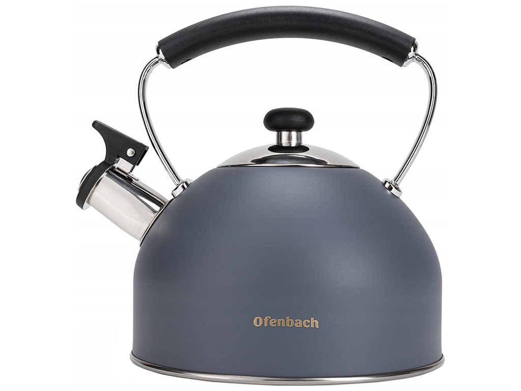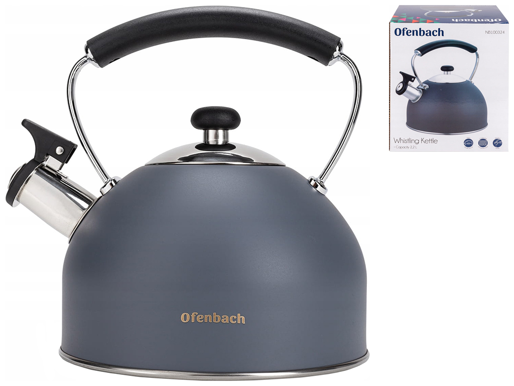 Чайник Ofenbach из нержавеющей стали со стационарным встроенным свистком. Равномерно распределяет тепло и сохраняет его дольше, а свисток сообщит вам, когда вода закипит, экономя энергию. Очень легко поддерживать в чистоте, можно мыть в посудомоечной машине. Позволяет кипятить воду на газовой, электрической, керамической и индукционной плите. Объем: 2,2л. Цвет: серый.