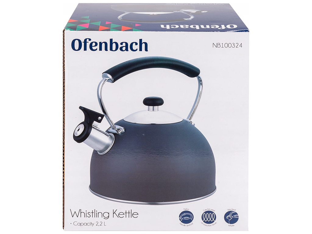 Чайник Ofenbach, из нержавеющей стали со свистком, 2,2л