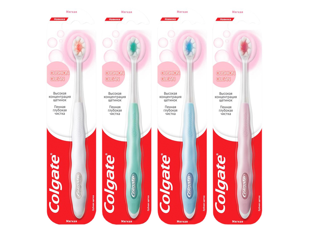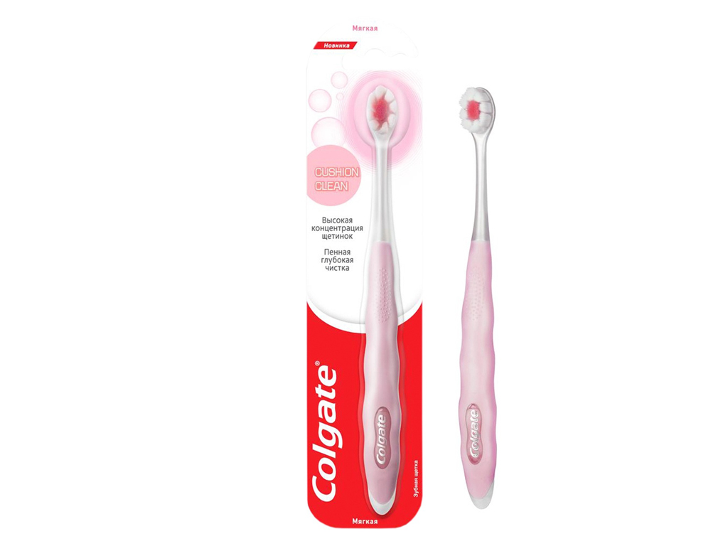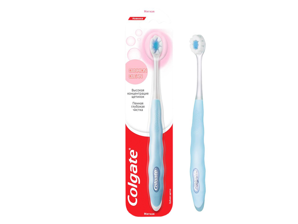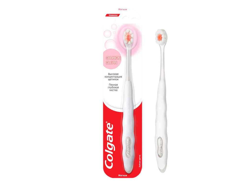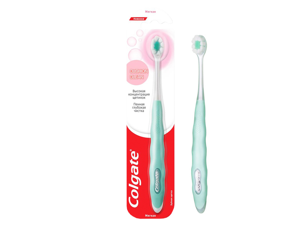 Зубная щётка Colgate Cushion Clean с мягкой щетиной предназначена для ежедневного очищения полости рта у подростков и взрослых. Компактная головка диаметром 3,5 мм облегчает доступ к труднодоступным участкам - между зубами, около дёсен и в задней части ротовой полости.