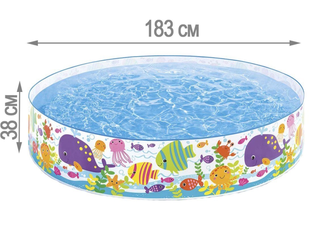 Каркасный бассейн Intex 56452 — это компактная модель для летнего отдыха детей на даче или во дворе. Круглая форма и высота борта 38см делают бассейн удобным и безопасным для малышей от 3 лет. Жёсткие стенки из армированного ПВХ надёжно удерживают форму даже при активных играх, а дно из прочного винила устойчиво к износу. Конструкция не требует инструментов для сборки — достаточно просто развернуть бассейн на ровной поверхности и наполнить водой. Благодаря объёму 958л при заполнении на 80% модель подходит как для купания, так и для игр с мячом, водой и надувными игрушками. Идеальный вариант для организации водных развлечений в жаркие дни. Насос и дополнительные аксессуары приобретаются отдельно.