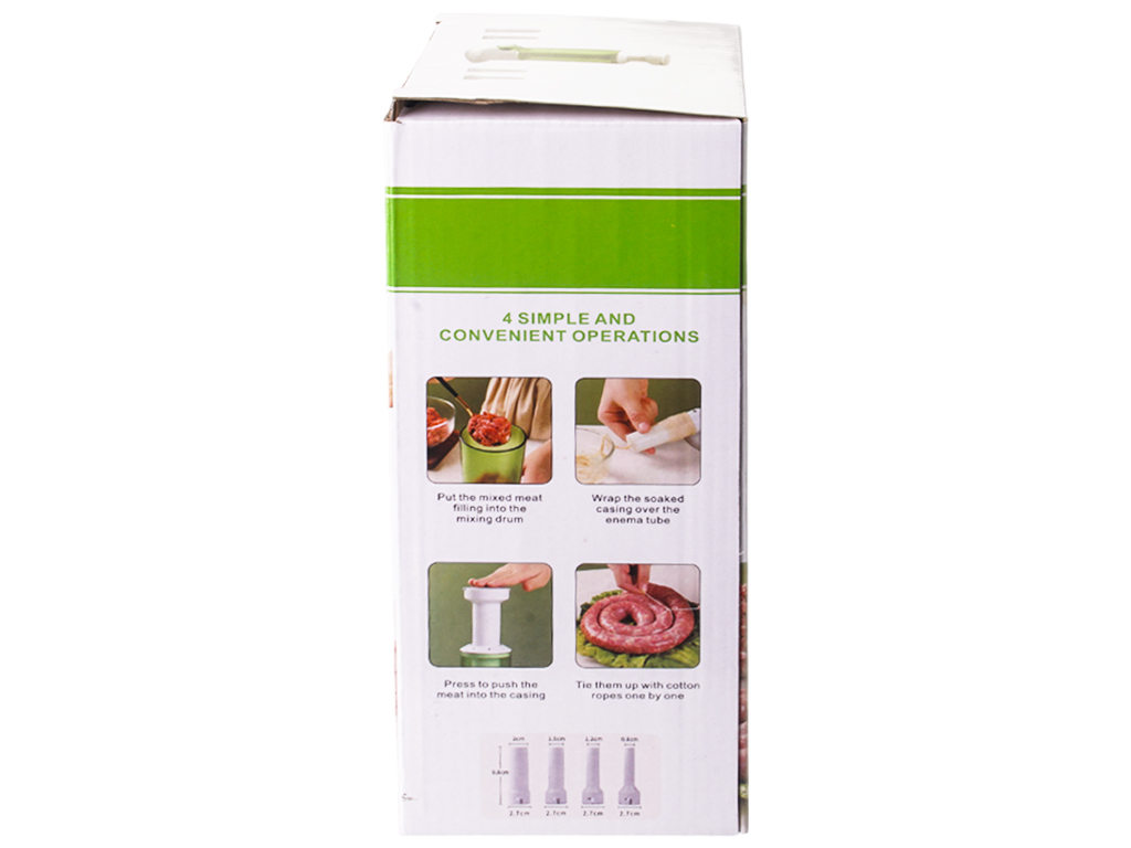 Шприц для изготовления колбас Benson упрощает процесс приготовления домашней колбасы, обеспечивая равномерное наполнение и аккуратный вид готового продукта. Размер: высота 25см, длина 10,8см, диаметр крышки 7,2см. Размер емкости: высота 15,5см, диаметр 7,5см, ширина с носиком 10см. Диаметр пресса: 7,2см, высота 20,8см. Материал: пластик. Размер коробки: 12х11х25,8см. Диаметр носика: 2,7см.