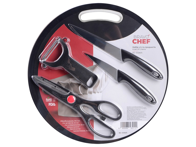 Набор ножей с доской + ножницы + овощечистка Bravo Chef, 6900068564114