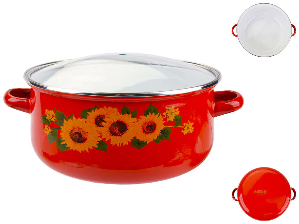 Кастрюля эмалированная Benson, с крышкой, 24см, 4,4л