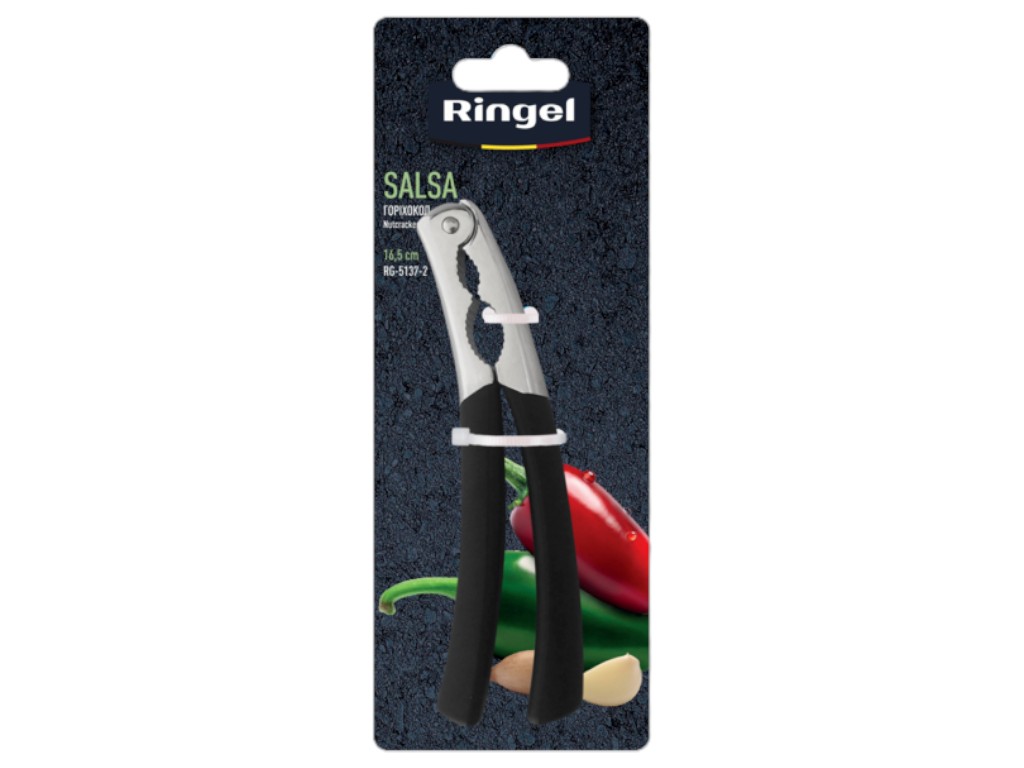 Ручной орехокол используется для раскалывания скорлупы грецких, лесных и других орехов среднего размера. Конструкция двухплечего типа имеет рифленую внутреннюю поверхность, надежно фиксирующую орех и распределяющую усилия для равномерного разлома без рассыпания. В серии Ringel Salsa корпус изготовлен из литого цинкового сплава, что обеспечивает высокую прочность при бытовой погрузке и стойкость к коррозии. Длина 16,5 см оптимальна для удобного размещения в руке и контроля силы сжатия при использовании. Рабочая зона имеет углубление для размещения орехов разного диаметра, что позволяет адаптировать инструмент к разным типам плодов. После использования прибор следует промыть теплой водой вручную с нейтральным моющим средством, вытереть досуха и хранить в сухом месте. Не рекомендуется применять для сверхтвердых объектов, которые могут превысить допустимую механическую нагрузку. Комплектация включает в себя один предмет без сменных частей или дополнительных элементов.