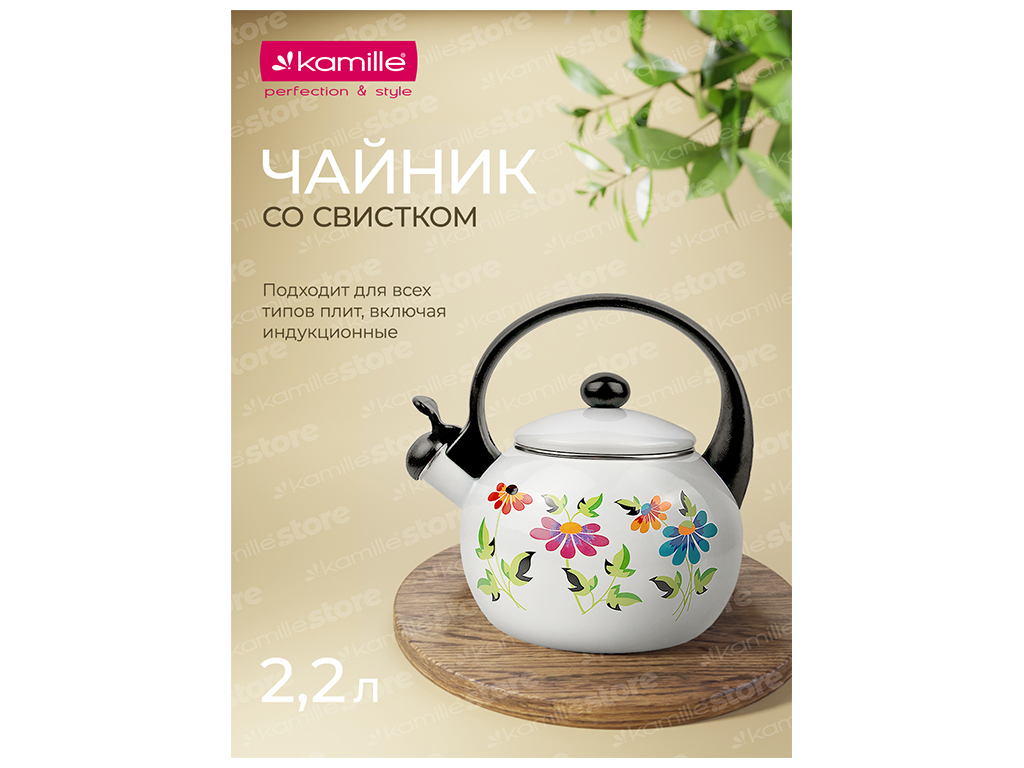 Чайник эмалированный Kamille, со свистком, 2,2л