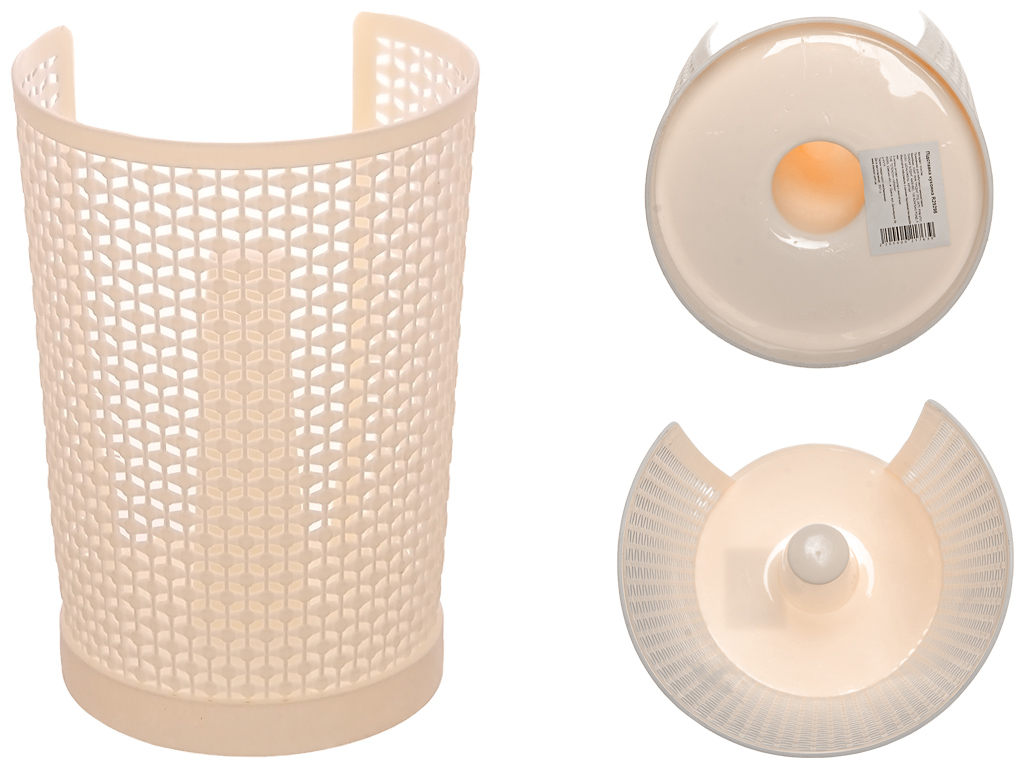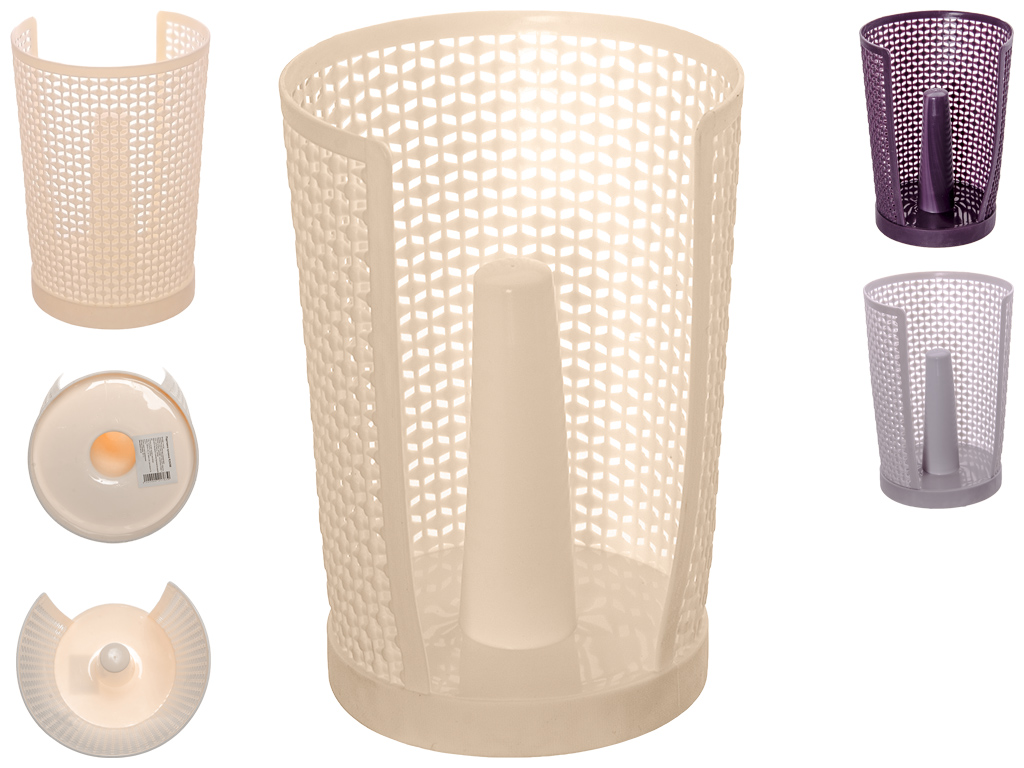Размер: 14х14х20,5см. Под рулон отверстием 4см, диаметром 12см. Материал: пластмасса. Цвета: серый, кремовый, фиолетовый. Способ установки: настольный. Размещение рулона: вертикальное. Вместимость рулонов: 1.