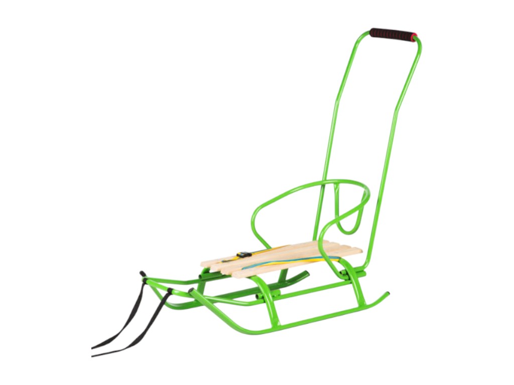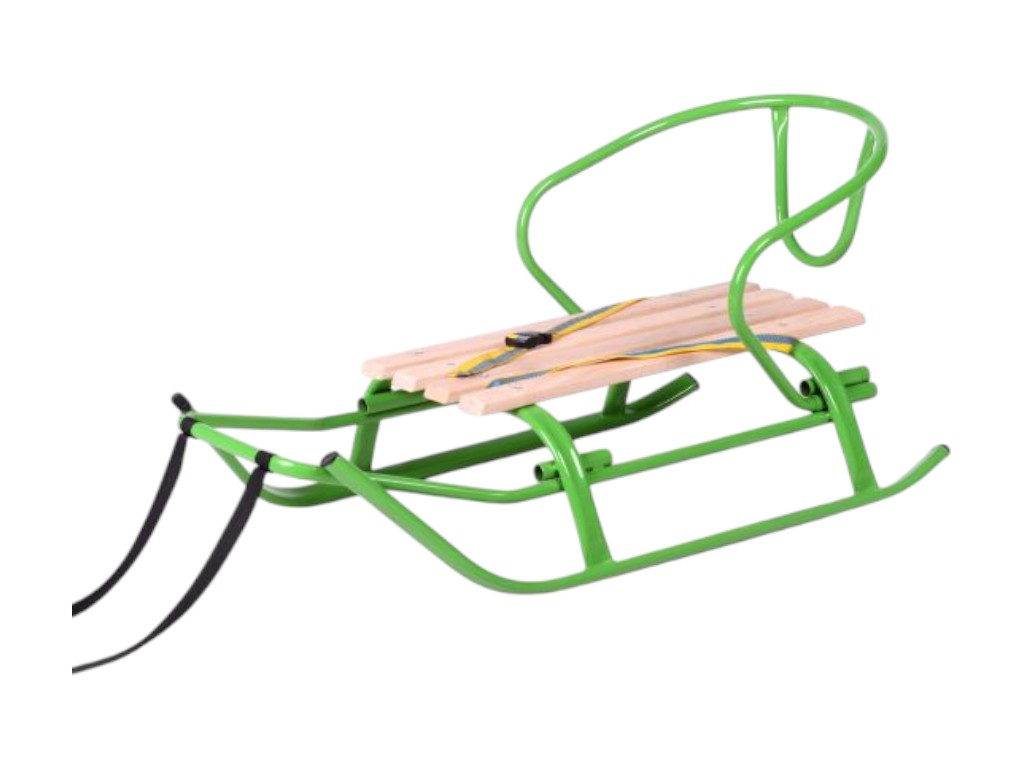 Санки Комета салатовые со спинкой, металлические с деревянным сиденьем, Vitan