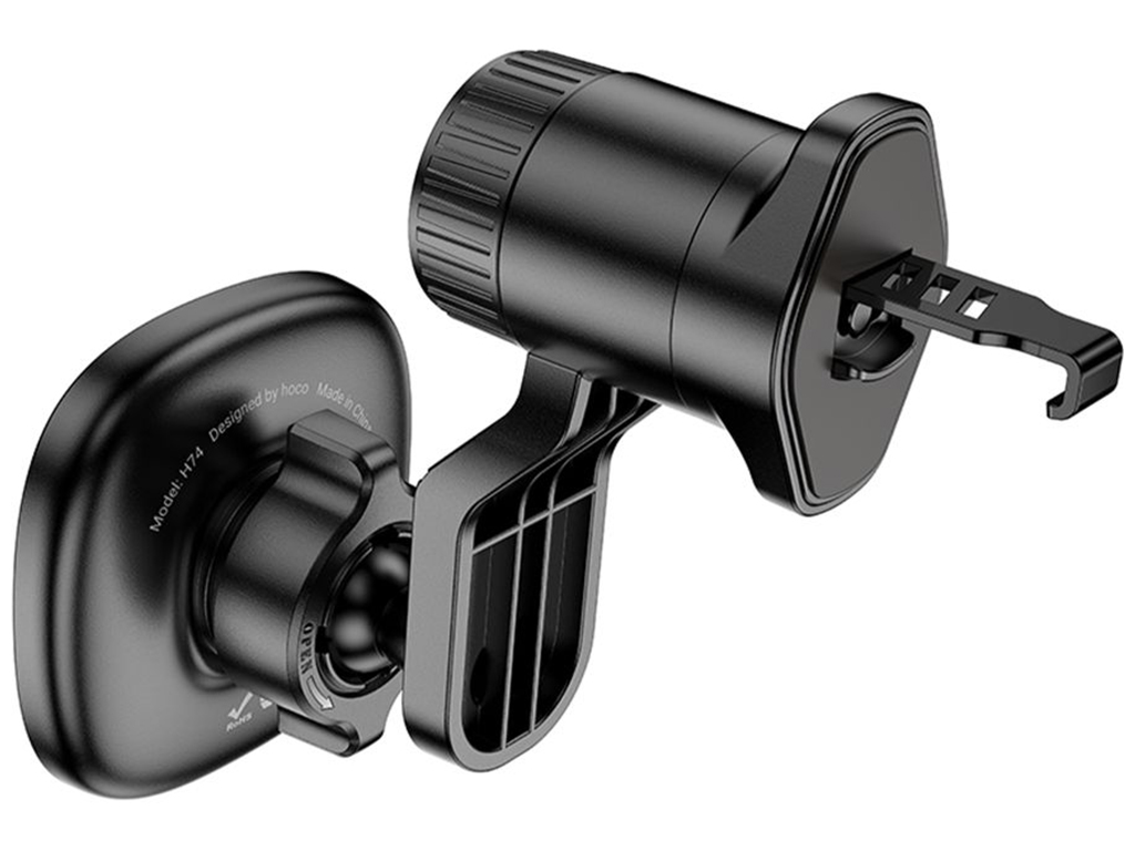 Автомобильный держатель Hoco H74 - это магнитное крепление, которое обеспечивает удобное и быстрое размещение смартфона в салоне авто. Компактная конструкция с размерами 98×60×99 мм не перекрывает поток воздуха из дефлектора и не мешает обзору, сохраняя при этом максимальную функциональность. Корпус изготовлен из прочного ABS-пластика с силиконовыми накладками, предотвращающими царапины на корпусе устройства. Встроенный кольцевой магнит надежно фиксирует смартфоны с поддержкой MagSafe (iPhone 12-16) или любые другие модели с комплектным магнитным кольцом, диагональю от 4.5 до 7.0 дюймов. Удлиненная ножка с двумя шарнирными соединениями позволяет гибко настроить положение смартфона, даже если точка крепления расположена неудобно. Механическое крепление с крючком обеспечивает надежную фиксацию на большинстве вентиляционных решеток (кроме радиальных).