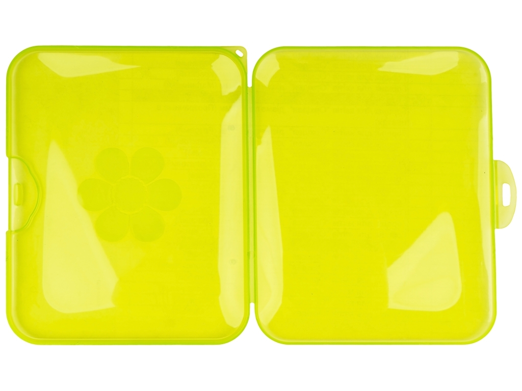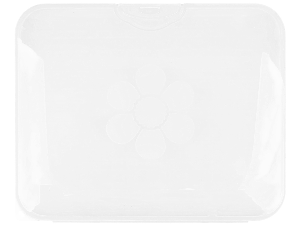 Футляр для маски Ромашка. Материал: полипропилен для пищевых продуктов. Цвета: зеленый, прозрачный. Размер в закрытом виде: 13,5x11x1см. Размер в открытом виде: 22,5x14x0,5см.