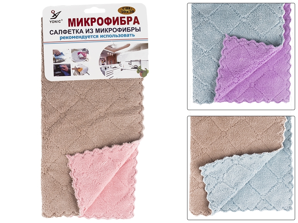 Размер: 30х30см. Расцветка ассорти: сиреневая с голубым, коричневая с розовым, коричневая с голубым. Подходит для проведения сухой и влажной уборки. Моет и вытирает насухо. Отлично удаляет грязь, жир, отпечатки пальцев с различных поверхностей. Антибактериальная. Гипоаллергенная. Высокоэффективная и долговечная.