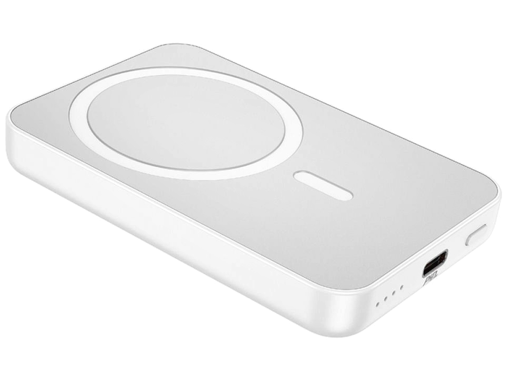 Корпус повербанка выполнен в стильном дизайне и надежно собран, изготовлен из огнестойкого поликарбоната и прочного ABS пластика. Магнитные кольцо и нижняя направляющая на его верхней панели полностью соответствуют технологии MagSafe и гарантируют надежную фиксацию. Легко определить уровень заряда его энергоэффективного аккумулятора емкостью 5000mAh помогут LED индикаторы и механическая кнопка для их активации. Аксессуар оснащен универсальным разъемом Type-C, который способен поставлять питание в обе стороны по протоколам QC, AFC, FCP с мощностью до 18W (5V/3A и 9V/2A) на входе и PD, QC, AFC, FCP с мощностью до 20W (5V/2A, 9V/2.33A и 12V/1.7A) на выходе. Мощность на выходе беспроводной может составлять 5, 7.5, 10 и 15W. Максимальная общая сила тока на выходе составляет 2A при напряжении 5V. В комплект к повербанку входит кабель USB - Type-C и инструкция. Тип зарядки: Проводной / Беспроводной;