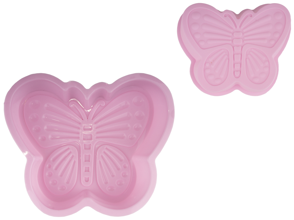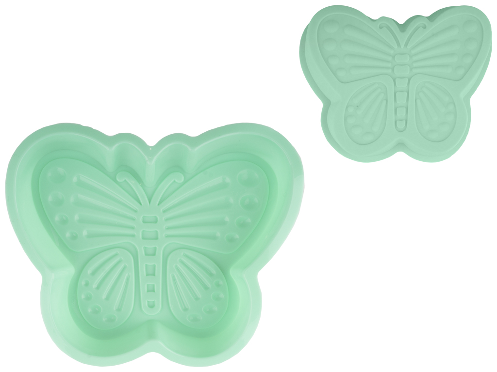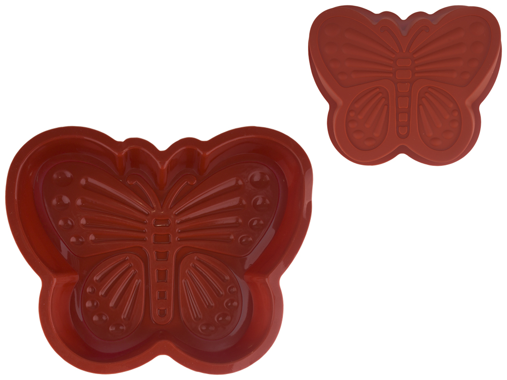 Размер формы: 16х2,5х13см. Цвета ассорти: розовый, зеленый (бледно изумрудный), коричневый (терракотовый). Форма для выпечки силиконовая в виде бабочки.