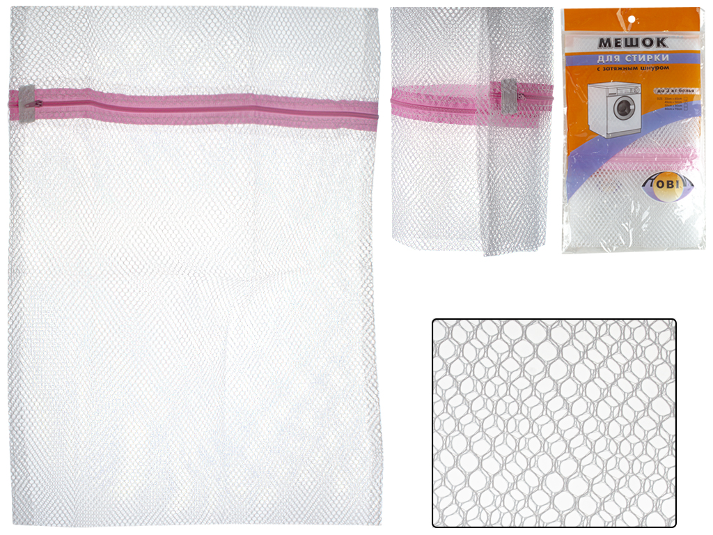 Размер: 40х50см (по замерам 38х49см). Рассчитан на 3кг белья. Застегивается на молнию. Мешок из сетки для безопасной стирки белья и другой одежды в стиральной машине. Защищает вещи от растягивания, контакта с барабаном стиральной машины, а также сам барабан от мелких предметов (косточек, замков, пуговиц). Поставляется в пакете.