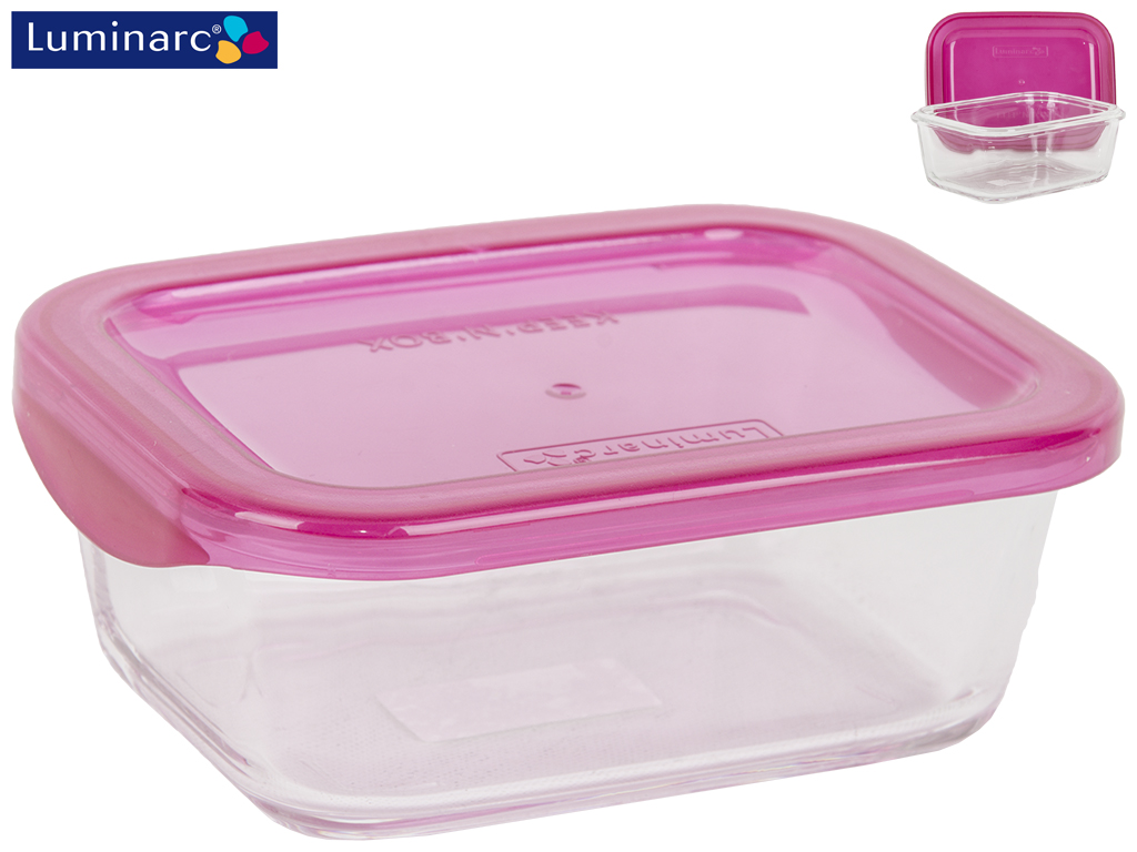 Контейнер стеклянный Luminarc Keep'n Box с пластиковой крышкой 380мл. Размер: 14х10,5х5,5см. Цвет: прозрачный, розовый (крышка). Контейнер можно использовать в микроволновых печах и посудомоечных машинах, а так же хранить в холодильнике и морозильных камерах. Материал: ударопрочное стекло, пластик. Форма: прямоугольная. Объем: 380мл. Крышка герметично защелкивается клипсами, предотвращая высыпание содержимого наружу.