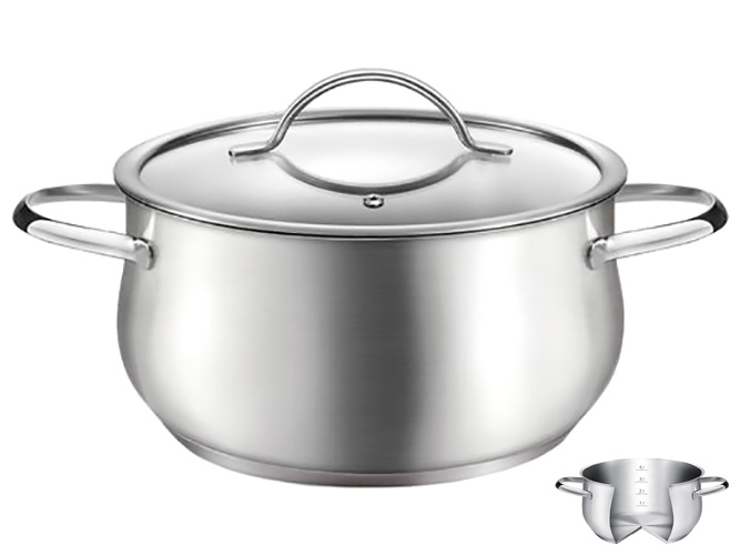 Идеально подходит для повседневного интенсивного использования на домашней кухне. Имеет водонепроницаемые ручки из нержавеющей стали, в которые не попадает вода даже при интенсивном мытье в посудомоечной машине. Крышка из нержавеющей стали оснащена отверстием для пара, а индукционное сэндвич-дно подходит для всех типов плит. Имеет мерную шкалу.