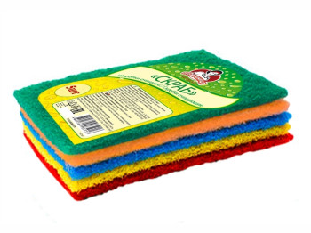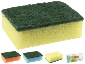 Губки кухонные "Профилированные" ТМ "Помічниця" имеют высокую степень поглощения и пенообразования. Жесткая абразивная фибра с другой стороны с легкостью удаляет все загрязнения. Устойчивы к разным моющим средствам. Подходят для кухонного оборудованияи других поверхностей. Размер: 10х7х4,5 см. Материал: пенополиуретан, абразивная фибра.