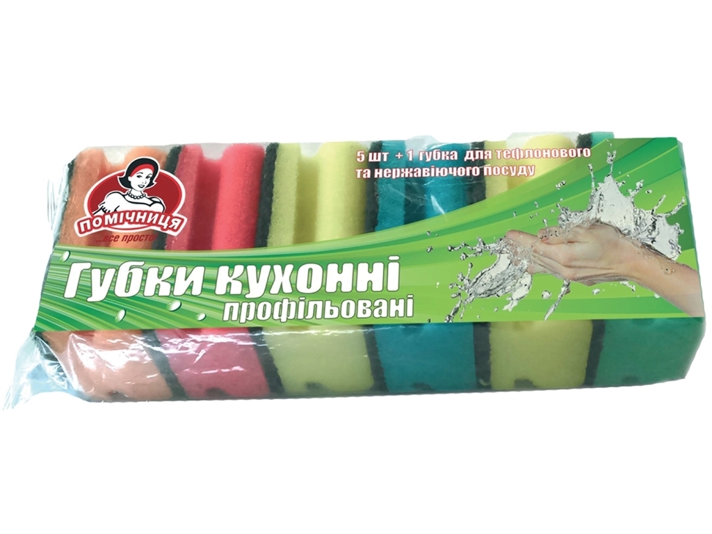 Губки кухонные "Профилированные" ТМ "Помічниця" 10х7х4,5см , 5шт+1 для тефлона
