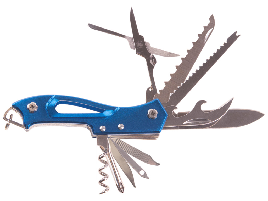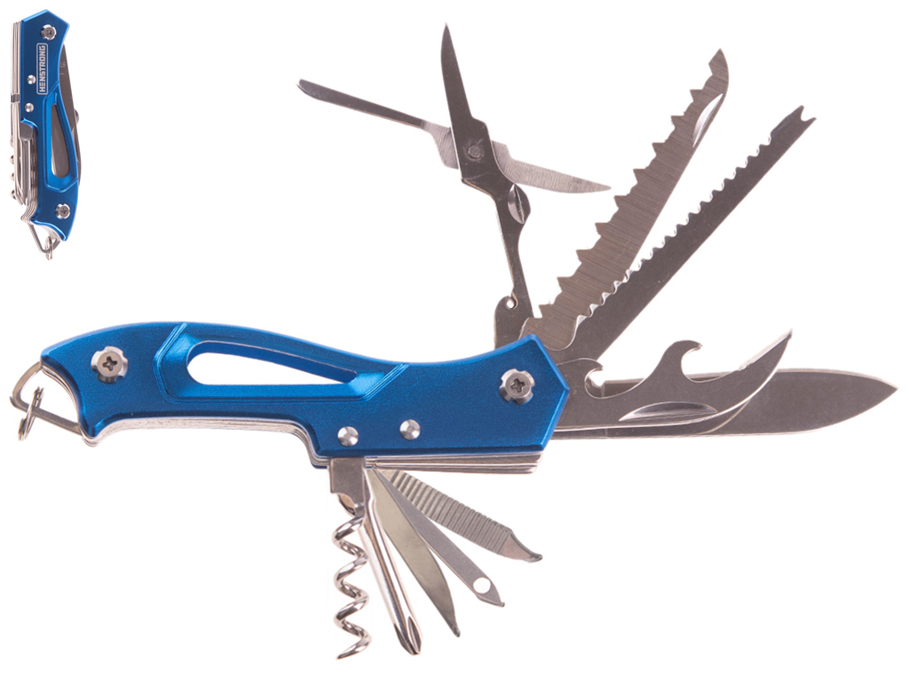 Складной туристический нож HENSTRONG обладает прочной конструкцией и станет надежным спутником для активных людей, часто выбирающихся на природу. Данная модель будет хорошим помощником во время туристических походов, охоты, рыбалки, кемпинга, а также дома. Инструментарий: большой нож, консервный нож, ножницы, открывалка, рыбочистка, штопор, шило, пила, щелевой съемник, кольцо для ключей, пилочка для ногтей, пробойник, лопатка для чистки ногтей, крестоподобная отвертка. Материал: сталь нержавеющая 3Cr13. Вес: 103 г. Размер в сложенном виде: 9,8см. Размер в разложенном виде: 15,5см.