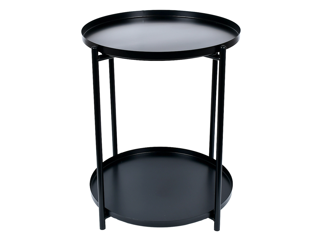 Компактный двухъярусный журнальный стол 52×42см — идеальное решение для современного интерьера. Круглые столешницы с бортиками удерживают предметы на месте, сохраняя аккуратность пространства. Прочная металлическая конструкция в черном цвете выдерживает ежедневную нагрузку, придавая интерьеру минималистичную элегантность. Подходит для гостиной, спальни, балкона или офиса. Легкий и мобильный, идеально вписывается в небольшие помещения.