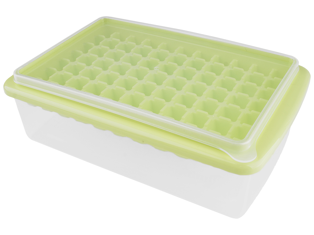 Форма для льда с контейнером и лопаткой. Размер контейнера в сборе с формой и крышкой 26,5х17х8см. Размер формы: 26,5х17х3,6см. Размер контейнера: 26,3х16,5х6,9см. Размер ячейки: 1,7х1,7х1,5см. Размер лопатки: 16,5х5,2х3,5см. Количество ячеек: 77шт. Поставляется в пакете.