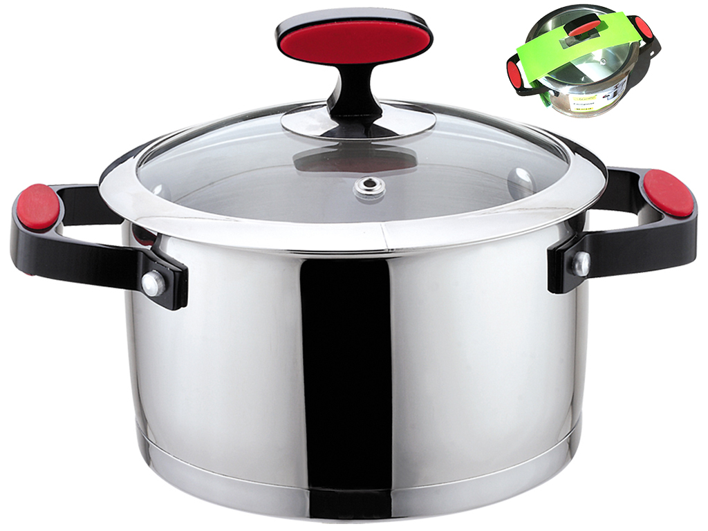 Кастрюля с крышкой D20см 3л. Многослойное термоаккумулирующее дно. Материал: высококачественная нержавеющая сталь. Материал ручек - нержавеющая сталь и силикон.