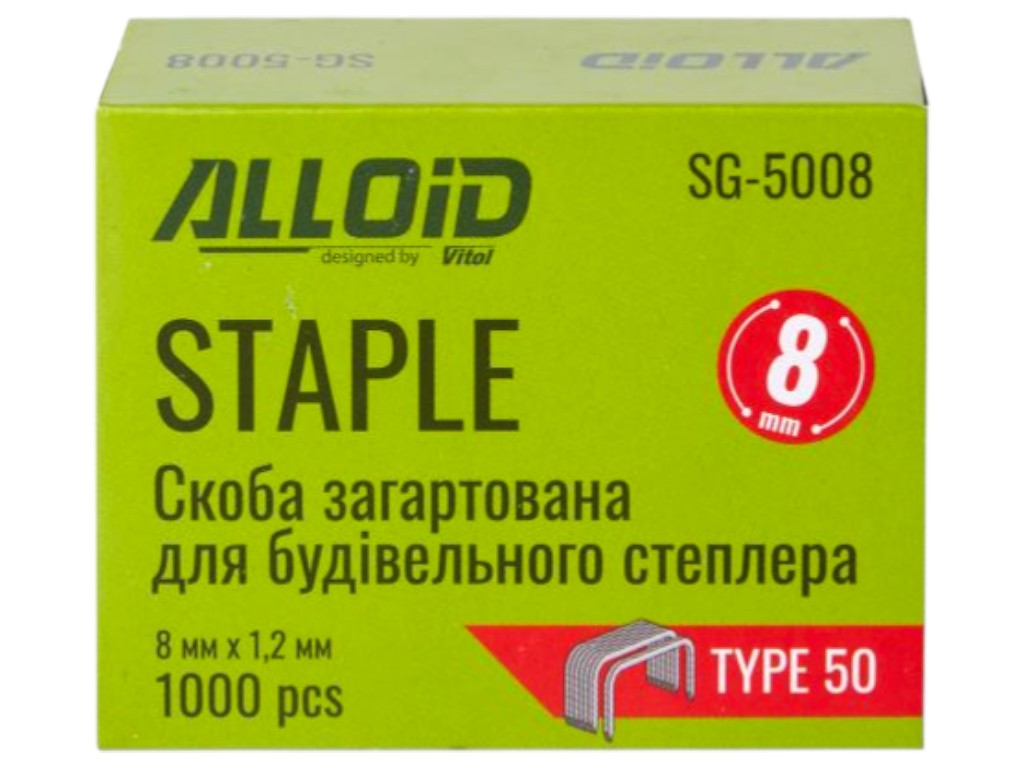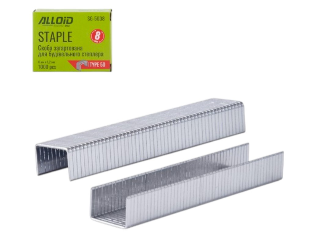 Скобы Alloid Pro, 8 мм х 1.2 мм, тип 50, закалённая сталь, для строительного степлера, 1000 штук